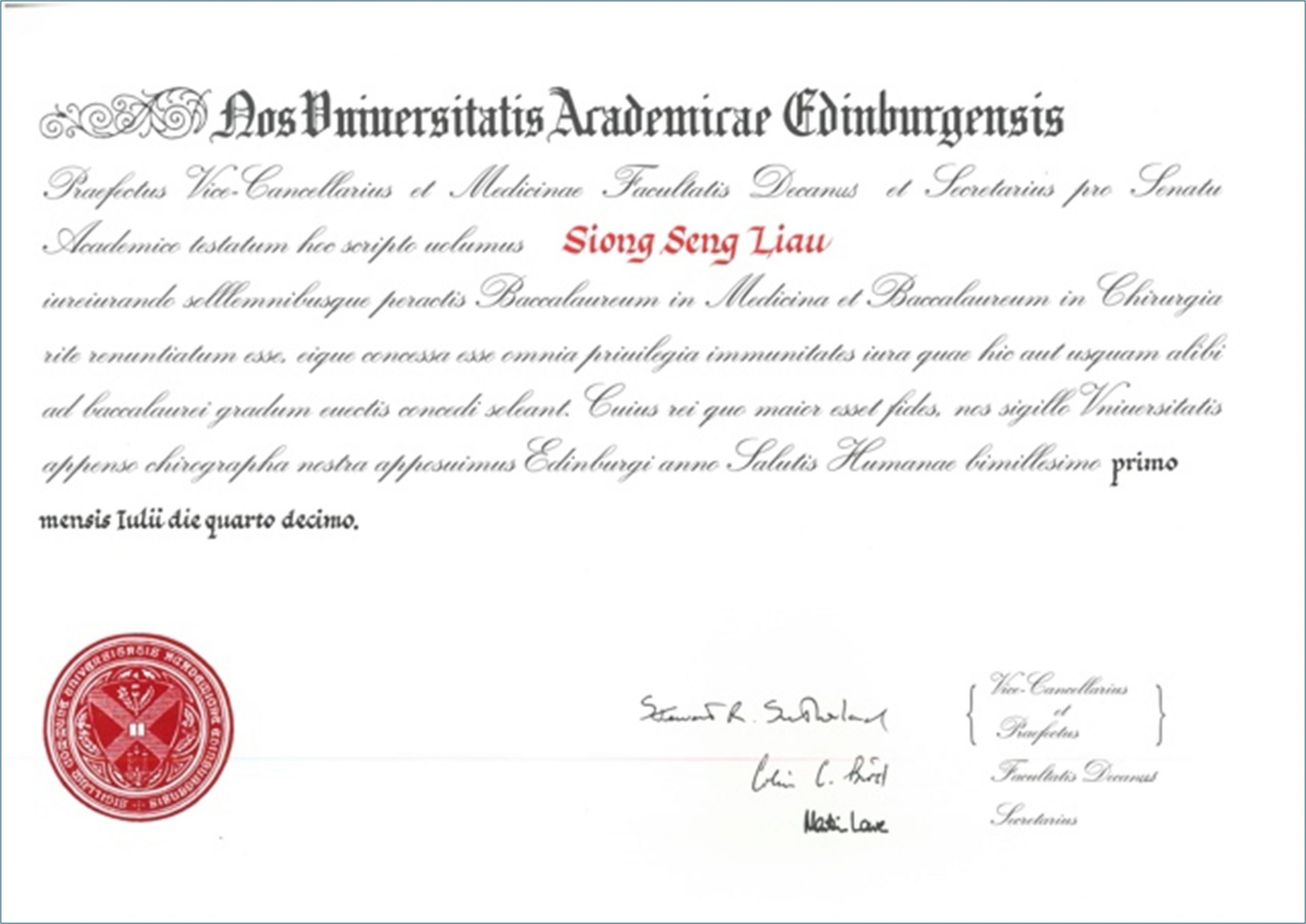 University of Edinburgh Medical School;MB, ChB (Edin.) with Distinctions
