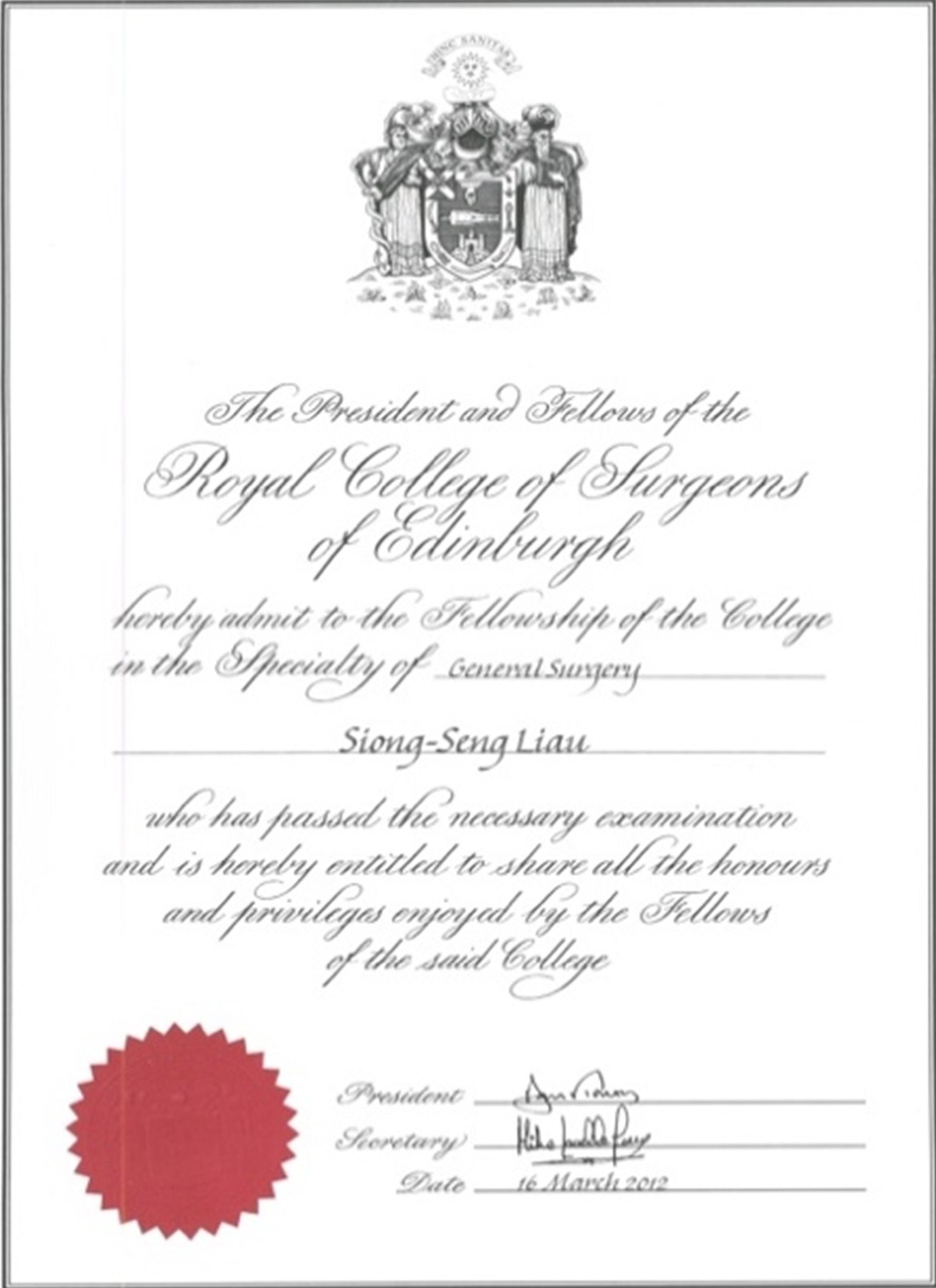 Royal College of Surgeons of Edinburgh; F.R.C.S (Edin.)