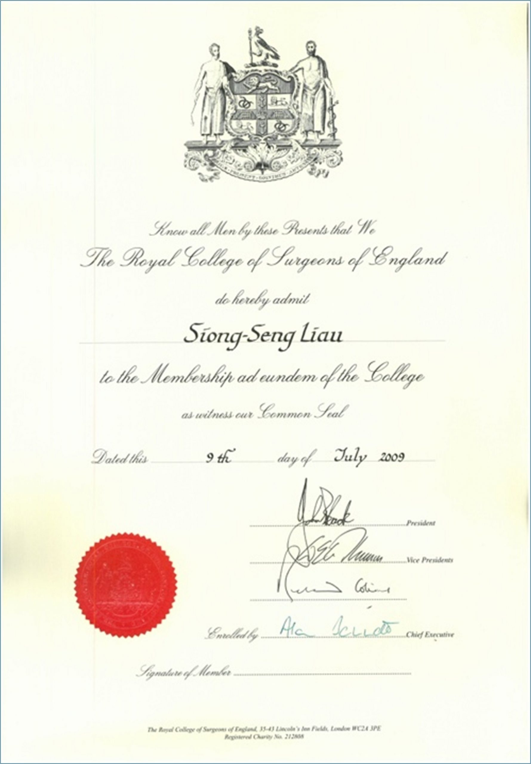Royal College of Surgeons of England; F.R.C.S (Eng.) ad eundem